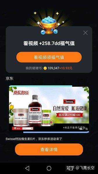 每天都会在页面上面看到长着翅膀的宝箱,里面有猪币,当你打开获取的时候,提示你想要获得翻倍奖励,请看视频。