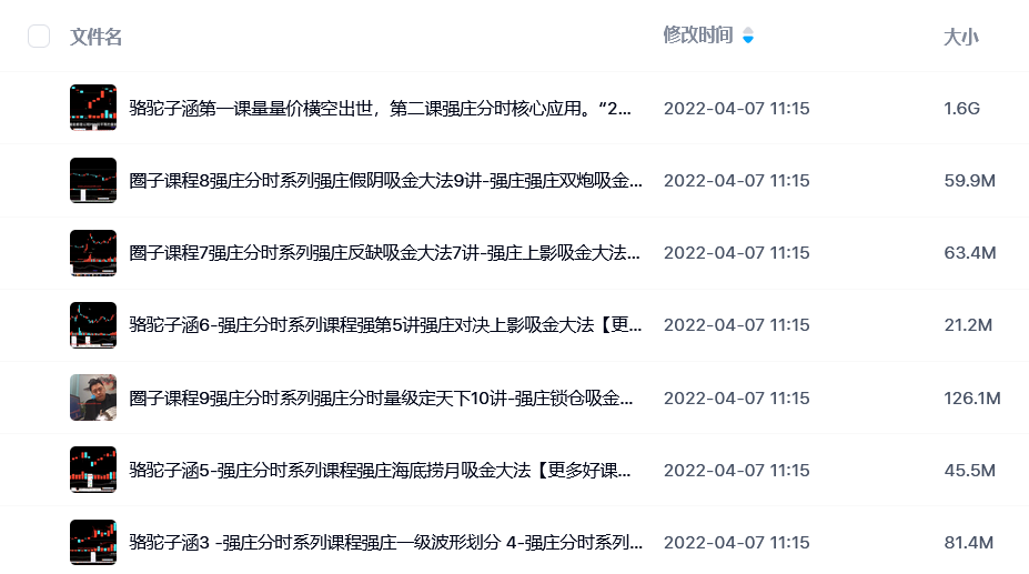 量学云讲堂·骆驼子涵:强庄分时量价核心集合竞价分时课目录